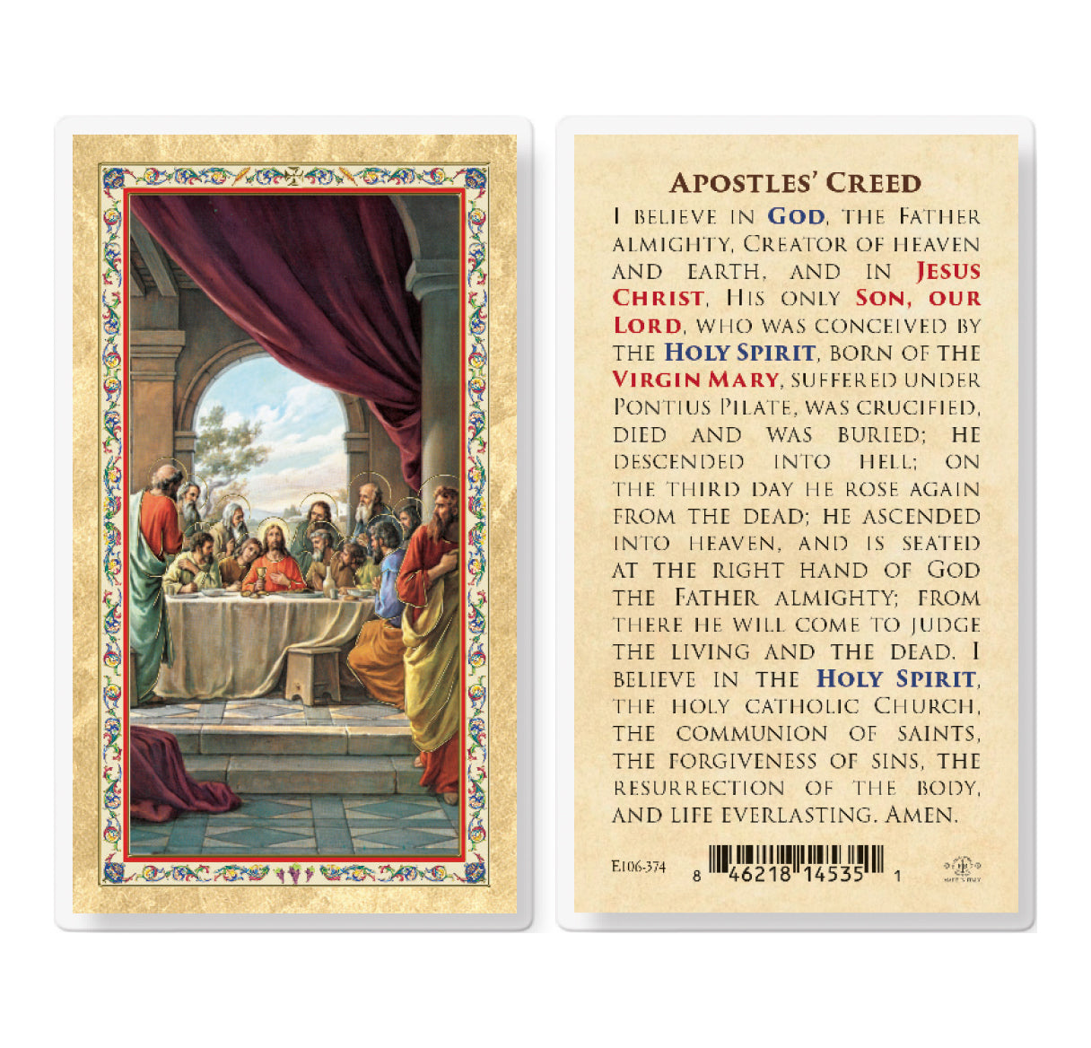 The Apostle's Creed - Last Supper Gold-Stamped Laminated Catholic Prayer Holy Card with Prayer on Back, Pack of 25 makes an excellent gift for various occasions, including baptisms, confirmations, or simply as a keepsake for personal devotion. Beautifully packaged in cellophane and made in Italy, these cards embody both quality and tradition.
