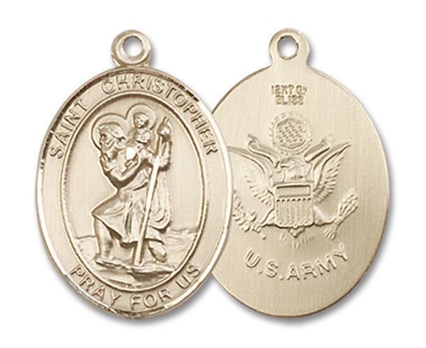 Discover the enduring beauty and significance of the Extel Oval Medium 14kt Gold Filled St Christopher Army Medal, Made in USA. This exquisite medal features the revered St. Christopher, known as the Patron Saint of Travelers and Motorists, making it an ideal accessory for anyone on the go. Crafted with care, this medal measures 3/4-inch tall by 1/2-inch wide, striking the perfect balance between elegance and subtlety.