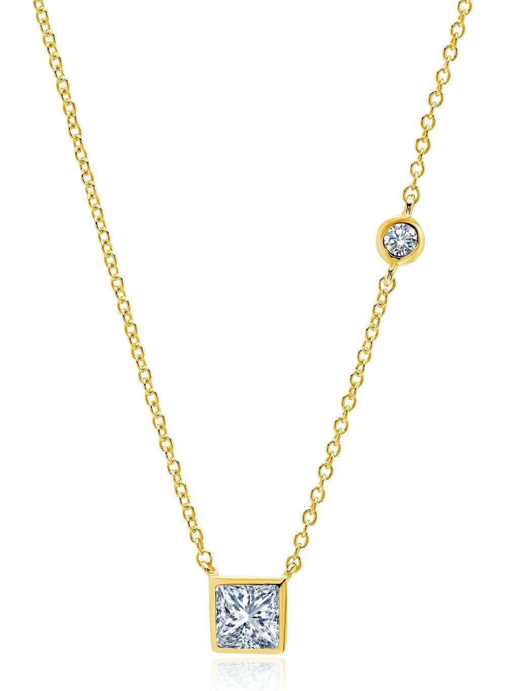 Crislu Square Ray CZ Necklace Finished in 18kt Yellow Gold