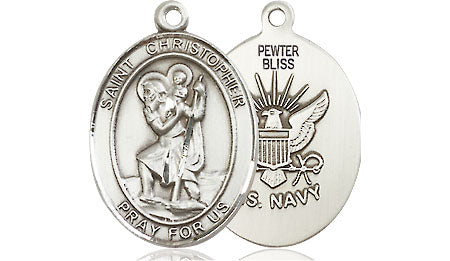 Extel Oval Medium Pewter St Christopher Navy Medal Made in USA