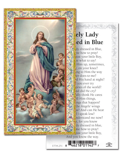 Lovely Lady Dressed in Blue Gold-Stamped Catholic Prayer Card Pack of 100