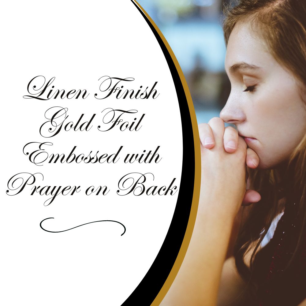 The Mysteries of the Rosary Catholic Prayer Holy Card with Prayer on Back, Pack of 50 is an exquisite collection designed for those who cherish the beauty and significance of the Rosary. Crafted with a luxurious gold foil embossed linen finish, these holy cards are not just items of devotion; they are also perfect for sharing faith with family and friends.