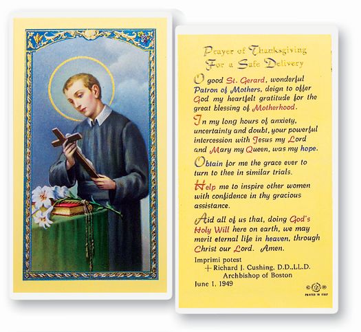 Saint Gerard Thanksgiving Prayer Laminated Catholic Prayer Holy Card with Prayer on Back Pack of 25