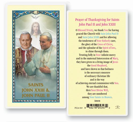 Saints John XXIII and John Paul II Laminated Catholic Card Pack of 25
