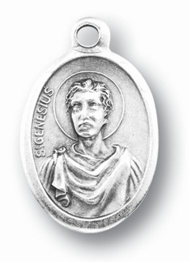 Enhance your spiritual journey with the Small Oval Saint Genesius - Pray for Us Silver Oxidized Medal Charm, Pack of 5 Medals. Perfect for personal devotion or sharing with loved ones, these exquisite medals feature a detailed image of Saint Genesius, making them a wonderful addition to any religious collection. Each medal measures 1 inch, making it easy to carry with you or incorporate into jewelry designs.