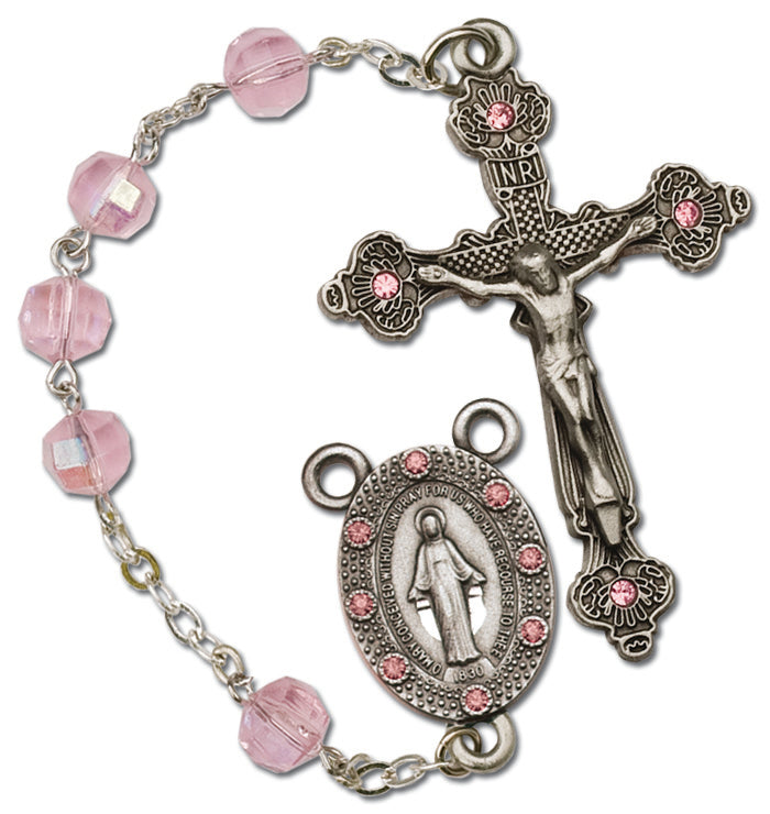 Discover the beauty and elegance of our Women's Medium Pink Catholic Rosary Beads, Aurora Borealis beads. Designed for both spiritual devotion and aesthetic appeal, these exquisite rosary beads feature stunning 7mm pink aurora borealis beads that catch the light beautifully, illuminating your prayers and moments of reflection. The hand-set pink crystal stones in the crucifix and center add a touch of sophistication, making this rosary a cherished piece for your spiritual journey.