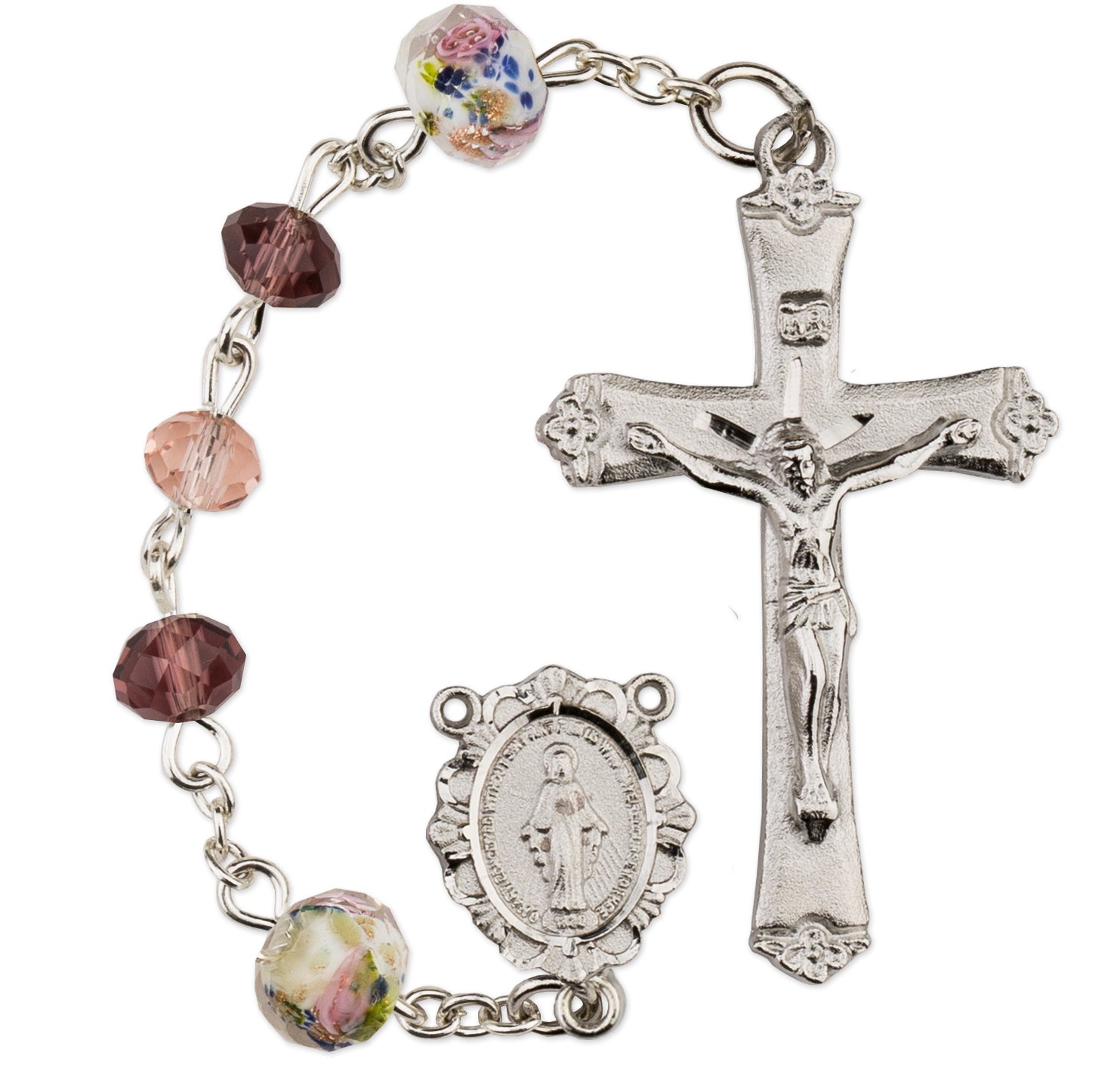 Discover the elegance and spirituality of our Women's Medium Pink Catholic Rosary Beads, Crystal beads. Each rosary is beautifully crafted with stunning pink and amethyst sun cut crystal beads, measuring 6mm, which catch the light and enhance your prayer experience. The addition of floral crystal Our Father beads adds a touch of grace and beauty, making these rosary beads a perfect companion for your daily devotionals.