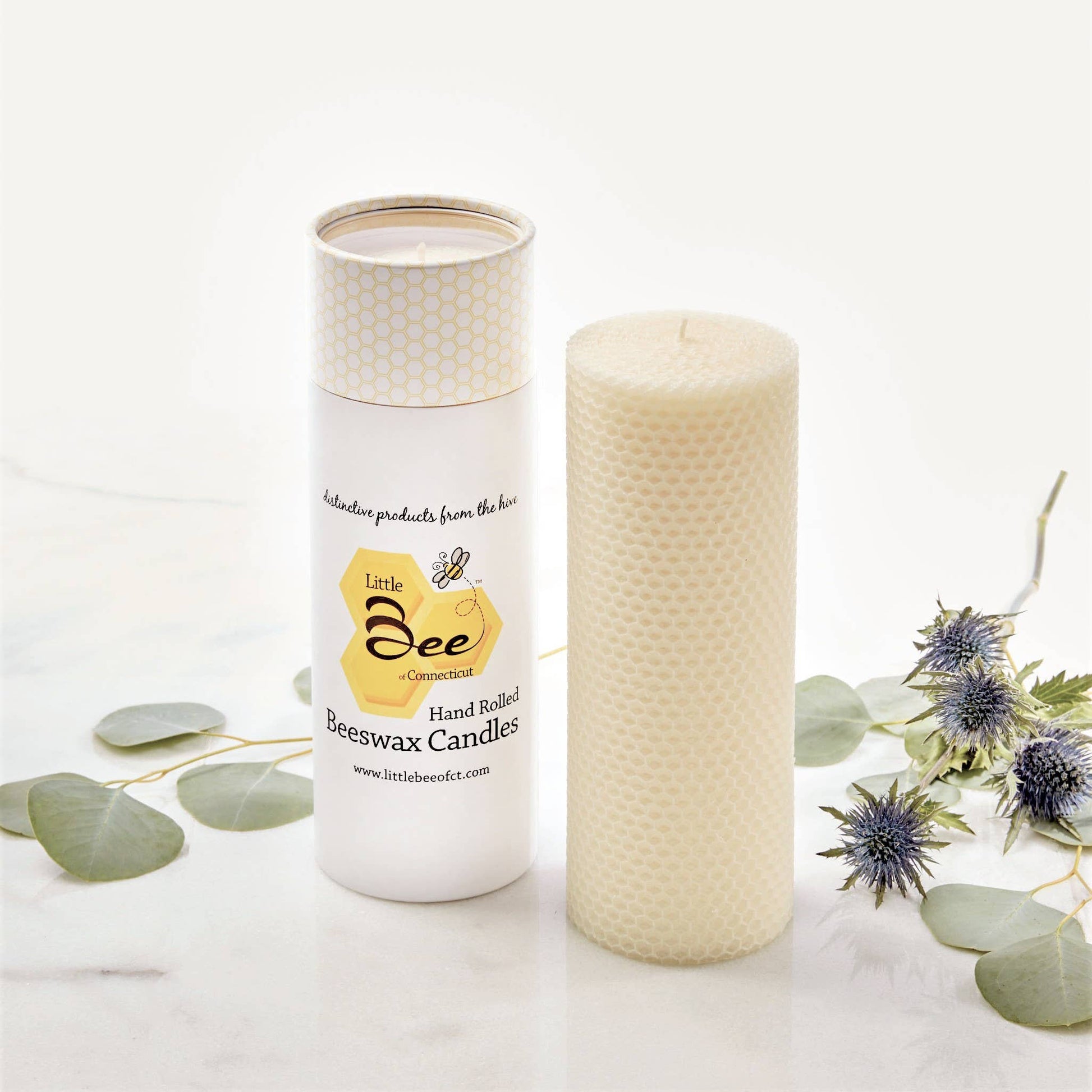 8 Inch Hand Rolled Beeswax Pillar Candle Natural Glow