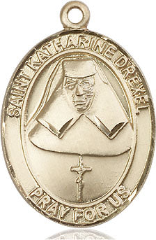 Extel Large Oval 14kt Gold Filled St. Katharine Drexel Medal, Made in USA