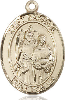Extel Large Oval 14kt Gold Filled St. Raphael the Archangel Medal, Made in USA