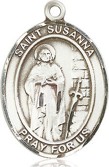 Extel Large Oval Pewter St. Susanna Pendant with 24" chain, Made in USA