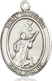 Extel Large Oval Pewter St. Tarcisius Pendant with 24" chain, Made in USA