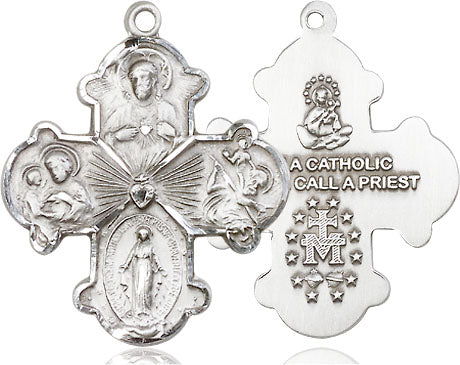 Extel Large Sterling Silver Traditional Catholic 4-Way Cross Medal