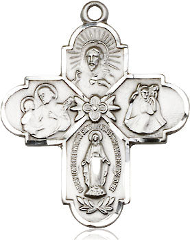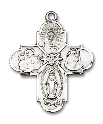 Extel Large Sterling Silver Traditional Catholic 4-Way Cross Medal