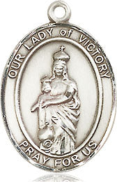 Extel Medium Oval Pewter Our Lady of Victory Pendant 18" Chain