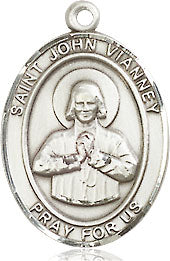 Extel Medium Oval Pewter St. John Vianney Pendant with 18" chain, Made in USA