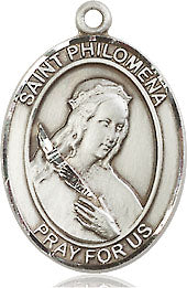 Extel Medium Oval Pewter St. Philomena Pendant with 18" chain, Made in USA