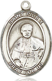 Extel Medium Oval Pewter St. Pius X Pendant with 18" chain, Made in USA