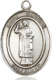 Extel Medium Oval Pewter St. Stephen the Martyr Pendant with 18" chain, Made in USA