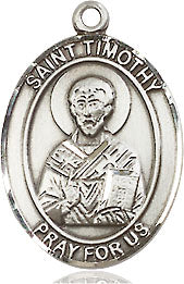 Extel Medium Oval Pewter St. Timothy Pendant with 18" chain, Made in USA