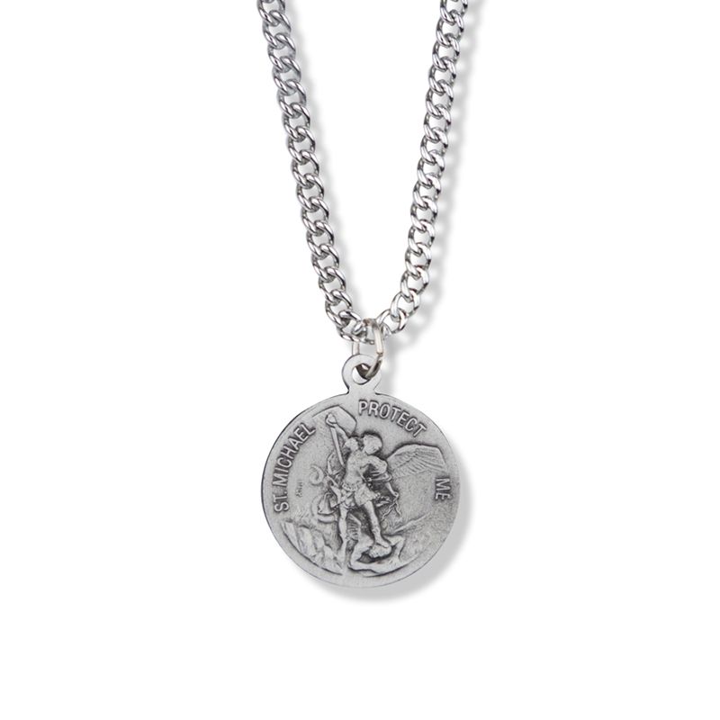 Extel Medium Round Pewter U.S. Army Medal Pendant with St. Michael for Men Women with 20 Inch Chain