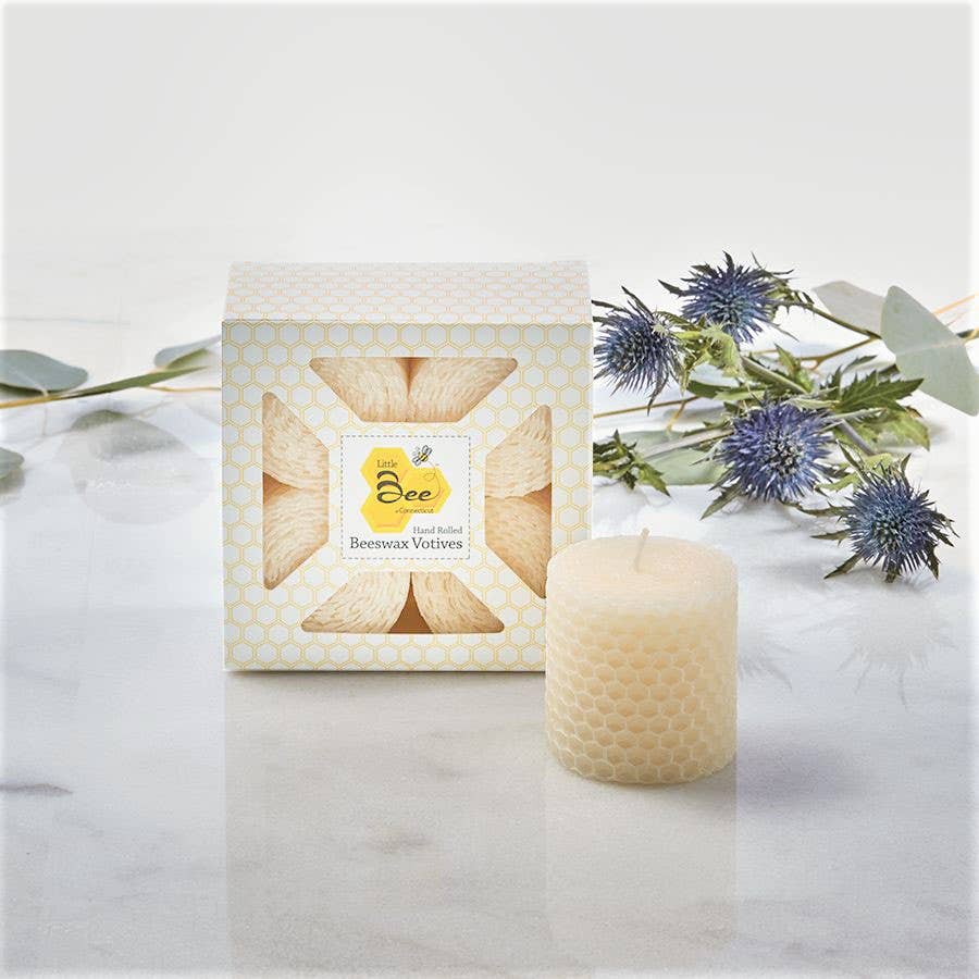 Hand-Rolled Beeswax Votive Candles 4pk Natural Glow