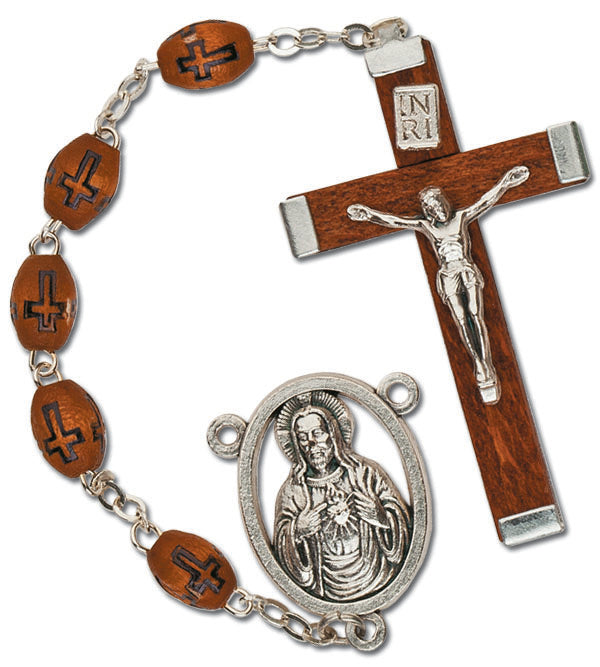 Men's Medium Brown Catholic Rosary Beads Wood Beads 5x7mm