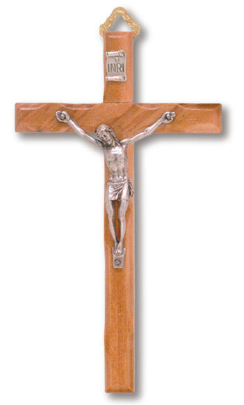Small Olive Wood Wall Crucifix with Silver Corpus 5 Inch